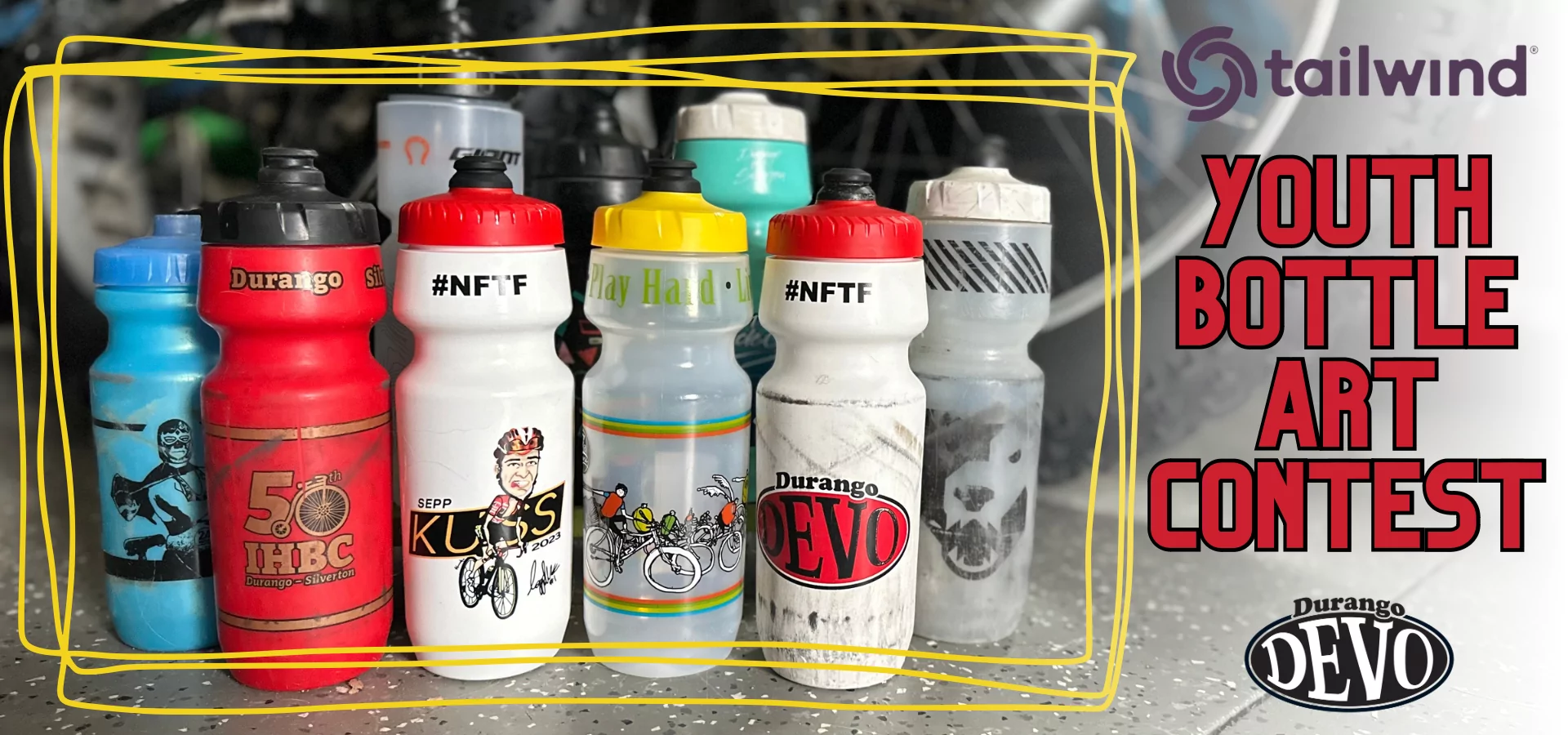 One winner will have their original artwork printed on a limited release cycling water bottle, to be distributed to all Durango Devo U14 and U19 riders. The winner will also receive a mega prize pack of Tailwind Nutrition products!